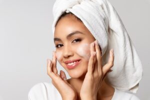 – التنظيف المزدوج: يُنصح باستخدام غسول زيتي أولًا، يليه غسول لطيف متوازن الرقم الهيدروجيني.