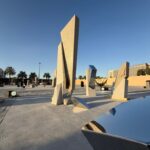 ترمز كتل الجرانيت إلى الهوية الراسخة والذاكرة المكانية التي قامت عليها المدينة، بما تحمله من دلالات الثبات والاستمرارية. في المقابل، تحضر قطع الفولاذ المصقولة كتمثيل للحاضر المتحوّل والبعد الحداثي، حيث تعكس الضوء والمحيط في إشارة إلى الانفتاح والتفاعل مع العالم. ويؤسس التفاعل بين الخامتين علاقة تكاملية تعيد تعريف الحداثة بوصفها مسارًا تراكميًا لا قطيعة فيه مع الجذور.