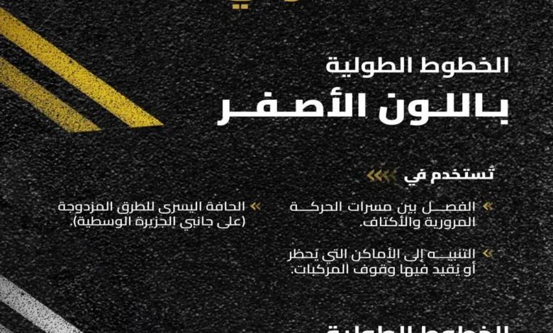 الهيئة العامة للطرق توضح مدلولات الخطوط الطولية وفق كود الطرق السعودي