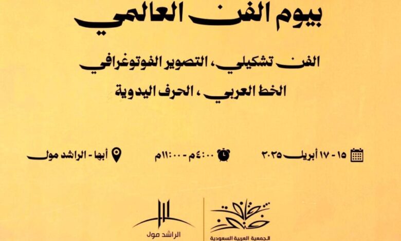 تتهيأ جمعية الثقافة والفنون في أبها للاحتفاء بـاليوم العالمي للفن عبر حزمة من الفعاليات التي تتحرك في مساحة الفن والثقافة بتناغم مع روح المناسبة. ويشهد مركز الراشد للفنون تدشين معرض للفنون البصرية بمشاركة واسعة من فناني وفنانات منطقة عسير، في مشهد يعكس تصاعد الحراك التشكيلي واتساع حضوره في المنطقة.