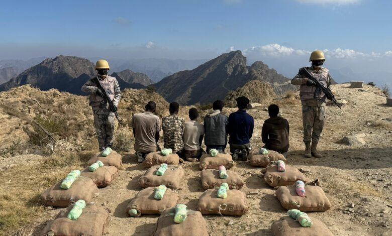 حرس الحدود بمنطقة عسير يقبض على 6 مخالفين لنظام أمن الحدود لتهريبهم 225كلجم من نبات القات المخدر