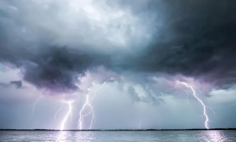 عواصف رعدية قوية مصحوبة ببرق وبَرَد.