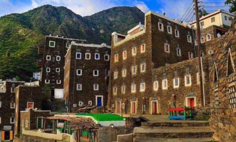 تحتوي قرية رجال ألمع على قصور حجرية عريقة، يرتفع بعضها على علو نحو ثمانية طوابق، وهي قريةٌ تتميز بالنقوش التراثية الفنية، وفيها أيضاً قصر ألمع العتيق، والذي جُهز ليكون متحفاً للحفاظ على تُراث القرية، ويمكن التمتع بمشاهدتها بواسطة جولة على متن التليفريك، وتناول أشهى الأطباق في مطاعمها ذات الإطلالة الخلابة.