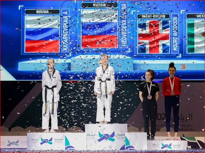بحضور سمو نائب رئيس الأولمبية السعودية الأمير فهد بن جلوي ورئيس اللجنة المحلية المنظمة للبطولة الأستاذة أضواء العريفي ورئيس الاتحاد الدولي للتايكوندو تشونغ وون ورئيس الاتحاد السعودي للتايكوندو العميد شداد العمري، اختتمت اليوم السبت على ملاعب الصالات الخضراء بمدينة الرياض منافسات النسخة الأولى من بطولة العالم للتايكوندو للسيّدات .