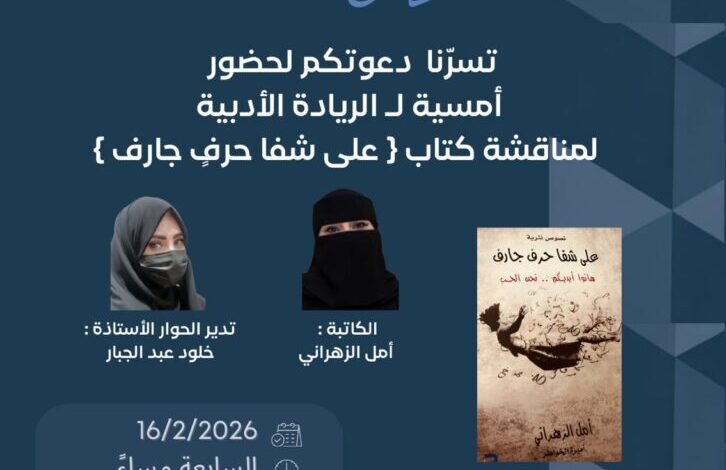 الريادة الأدبية تنظم أمسية لمناقشة كتاب “على شفا حرف جارِف” للكاتبة أمل الزهراني