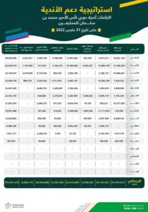 أعلنت لجنة الكفاءة المالية الالتزامات المالية واجبة السداد حتى 31 مارس2022 لأندية دوري كأس الأمير محمد بن سلمان للمحترفين.