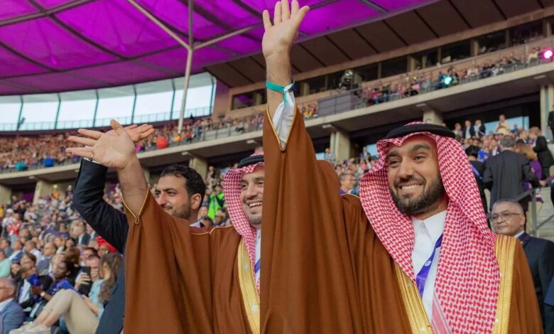 نيابةً عن خادم الحرمين الشريفين الملك سلمان بن عبدالعزيز آل سعود حفظه الله حضر صاحب السمو الملكي الأمير عبدالعزيز بن تركي بن فيصل بن عبدالعزيز وزير الرياضة رئيس اللجنة الأولمبية والبارالمبية السعودية، السبت، حفل افتتاح دورة الألعاب العالمية للأولمبياد الخاص برلين 2023، وذلك في الاستاد الأولمبي بالعاصمة الألمانية برلين.