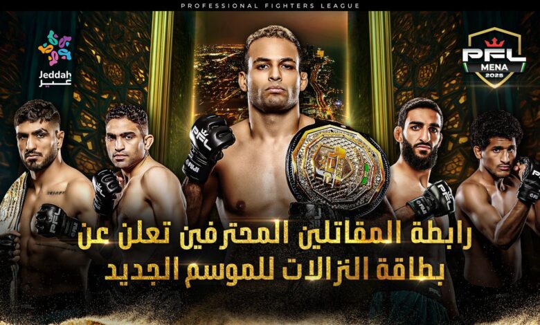 أعلنت رابطة المقاتلين المحترفين (PFL) عن البطاقة الكاملة لنزالات الحدث الأول في موسم PFL MENA لعام 2025، والذي سيُقام في مدينة جدة، المملكة العربية السعودية، يوم الجمعة الموافق 9 مايو 2025.