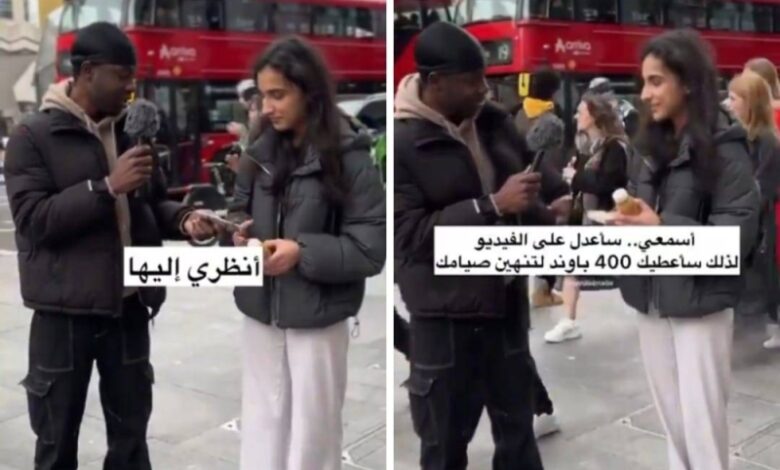 شاهد.. ردة فعل فتاة خليجية في بريطانيا بعدما طلب منها شاب الإفطار في نهار رمضان مقابل 400 باوند وآيفون