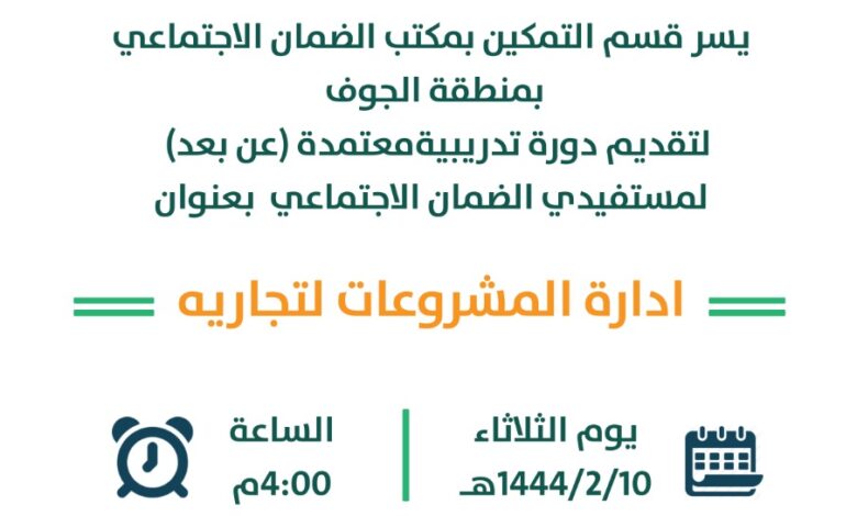 ضمان الجوف ينظم دورة تدريبية بعنوان(إدارة المشروعات التجارية).
