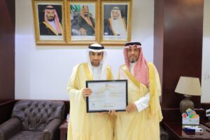 وقام مدير عام فرع هيئة الهلال الأحمر السعودي بالقصيم خالد الخَضَر بتسليم الشهادة إلى محافظ البكيرية: محمد العريفي، وذلك بحضور فريق العمل القائم على تنفيذ مشروع “معاذ” بفرع الهيئة.