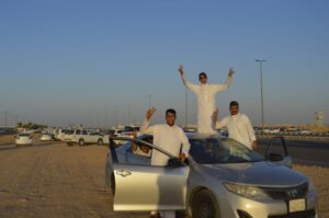 وقام بالاستعراض الجوي سرب من الصقور السعودية بقاعدة الجوف الجوية ، حيث قدم عروضا مختلفة ومتنوعة فوق بحيرة دُومَة الْجَنْدَلِ بالمنطقة ، كما شاركت في العرض فرقة الموسيقى العسكرية ،وسط حضور كبير من الأهالي، والذين تفاعلوا مع العرض الجوي ، والأجواء الحماسية المبهرة ، وقام الأهالي بالتقاط الصور التذكارية مع قائدي الطائرات المشاركة في العرض.