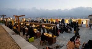 ففي “قلعة شمسان” الأثرية شمال مدينة أبها، يُستقبل الزائر بنغمات العود بمعزوفاته المنوعة، ثم تبدأ رحلة التجول بين الأركان التي تعرض الملبوسات التقليدية للدول المشاركة، وأخرى خُصصت للحرف المحلية، تنوعت محتوياتها بين صناعة الهدايا التذكارية من وحي الجبال، والتعريف بفن القط العسيري، وبيع التحف التراثية والحُلي المصنوعة من الخرز، وتشكيلات الزهور المائية.