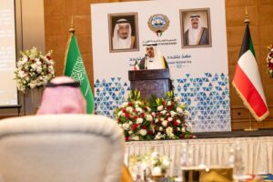 وأشار المطيري في كلمته الى الزيارات المتبادلة بين قادة البلدين الشقيقين مشيراً الى الزيارة الاخيرة لصاحب السمو أمير البلاد إلى المملكة والتي تعد الأولى بعد توليه مقاليد الحكم ولقائه بأخيه خادم الحرمين الشريفين، وولي العهد، وأفاد سعادته أن لتلك الزيارة الكريمة مدلولاتها وأبعادها التي تدل على أهمية المملكة بالنسبة للكويت، وأنها امتداد استراتيجي وعمق خليجي وعربي وإسلامي، منوها الى ان الزيارة تكللت بتقليد أمير دولة الكويت حفظه الله ورعاه، قلادة الملك عبد العزيز، من قبل صاحب السمو الملكي الأمير محمد بن سلمان بن عبد العزيز نيابة عن خادم الحرمين الشريفين، والتي تعدّ أرفع وسام في السعودية، تقديراً له.