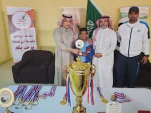 بحضور مدير المدرسة الأستاذ / صالح المطيري، و بتشريف سعادة الدكتور /عبدالعزيز العروي رئيس النشاط الرياضي بتعليم المدينة، وبحضور الأستاذ عبدالله الردادي المدير التنفيذي لفريق رؤيا ميديا، وقائد فريق رؤيا ميديا الأستاذ / بدر الحجيلي، و معلم التربية البدنية الأستاذ / غازي الحجيلي، أقيمت ضمن فعاليات يوم التأسيس بالمدرسة المباراة النهائية للبطولة بين فريقي الصف ٦ / ب و ٥ / أ، وانتهت بفوز الصف ( ٦ / ب ) بنتيجة ٣ مقابل صفر.