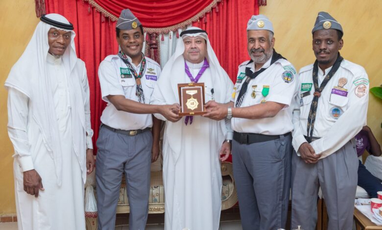 وعدد من الكشافين الذين شاركو في معسكر ات الخدمة العامه التابعة لجمعية الكشافة العربية السعودية ومبادرة ال قاضي للأعمال التطوعية والشركات ومؤسسات حجاج الداخل