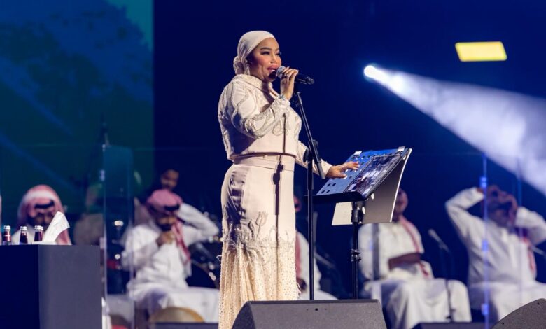 واستهلت الفنانة موضي الشمراني فقرتها بأغنية وطنية أشعلت حماس الجمهور، واختتمت أيضًا بأغنية وطنية وسط تفاعل واسع وتصفيق حار، في أداء جسّد روح الفخر والانتماء.
