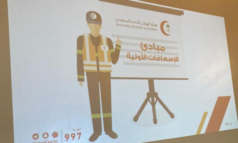 وقدم الدورة الأخصائي الأستاذ/فوزي عوض البلوي وتهدف الى رفع مستوى ثقافة الإسعافات الأولية والتعرف على جميع جوانب الإسعافات والتطبيق العملي .