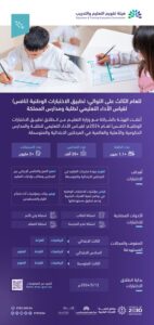 والاختبارات التعليمية؛ كالاختبارات الوطنية في مراحل التعليم العام ذات العلاقة بتقويم التعليم العام”، وللمزيد من المعلومات عن الاختبارات الوطنية (نافس) زيارة الصفحة على الرابط: https://nafs.etec.gov.sa .