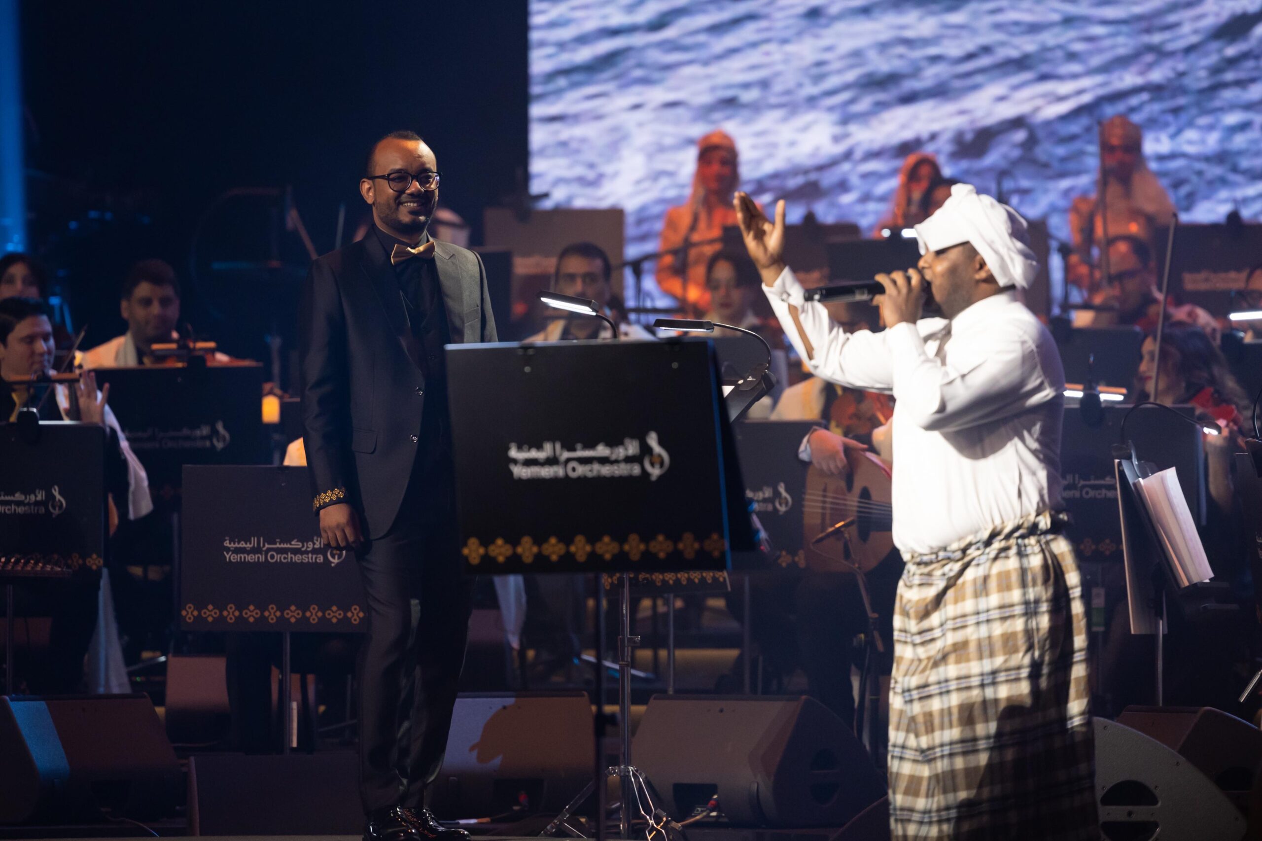 واستُكملت الأمسية بالفقرة الثانية التي انطلقت بأغنية “أمواج اللقاء”، ثم “ربش وبرع”، و”ماؤ الذهب”، و”متيّم”، و”ميدلي يمني”، و”غدّر الليل”، و”يا وليد يا نينو”، وأعقبها أداء الفرقة اليمنية لميدلي سعودي من أبرز الأغاني الوطنية مثل “وطني الحبيب”، و”أنت ملك”، و”يا سلامي عليكم يا السعودية”، و”يا بلادي واصلي”، واختتمت بالأغنية الوطنية اليمنية “وطن”.