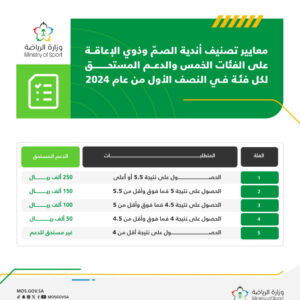 ونوهت وزارة الرياضة إلى أن ناديي الشباب والاتفاق، الدعم الكامل عن الربعين الثالث والرابع من الموسم الرياضي 2023-2024